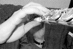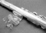 The do-it-yourself Variety Pauline Mancuso, a wonderful flautist and one of my Flute List buddies, has firsthand experience of injuries and has subsequently invested a lot of time experimenting. Her extremely helpful articles can be found, along with other fascinating material, under the performance health section on Larry Krantz's website (www.LarryKrantz.com). Pauline is a fan of the DIY approach: 'As long as we are experimenting with comfort and position, we might as well do it with handy, inexpensive materials until we get the alignment we want. Next week, we may change our minds anyway.' The easiest DIY adaptation is to change the height of the key by raising its surface. Pauline suggests two ways of doing this for the G# key: purchasing a saxophone palm key riser (built to fit on a similar lever-type key, but may wobble); or (cheaper) gluing on a piece of cork (available from hardware and craft stores, or maybe from your next bottle of wine). Cork is best cut with exceptionally sharp blades, so please be careful. Sanding with an emery board or nail file is reasonably easy. For other keys, such as the G key (bdth inline and offset), Pauline points out that we do not have to place the finger in the middle of the key. She suggests gluing on a 'pearl' sax key button at the point where it is comfortable to touch the key this is a much nicer surface than an edge. If your flute is also open-hole, you can use a silicon plug to plug it up. As an alternative to the plug, another of my Flute List buddies (please forgive me for forgetting exactly who) suggested covering the hole with electrical tape, to avoid changing the acoustic dimensions of an open-hole flute. Glues (for applying gadgets to metal keys or metal tubing only!) Look for glue that either peels off or has an easy-to-use solvent (buy this at the same time). I like contact cements and silicon glues, but not those designed for permanent fixtures. The sulphur content in rubber bands will mark silver, but I have never had a discolouration from using rubber contact cement. My understanding is that rubber contact cement seals the silver from contact with oxygen, preventing the reaction from happening. To be sure, try a little dab of the glue you are thinking of using on the back of a piece of silverware before using the glue on your flute. Another good way of affixing things is to use sticky-backed Velcro (available in a craft or sewing supplies store) or double-sided sticky tape, which also requires a solvent to remove completely.
